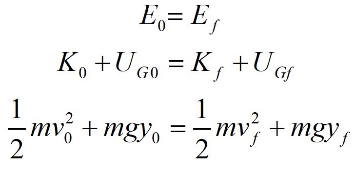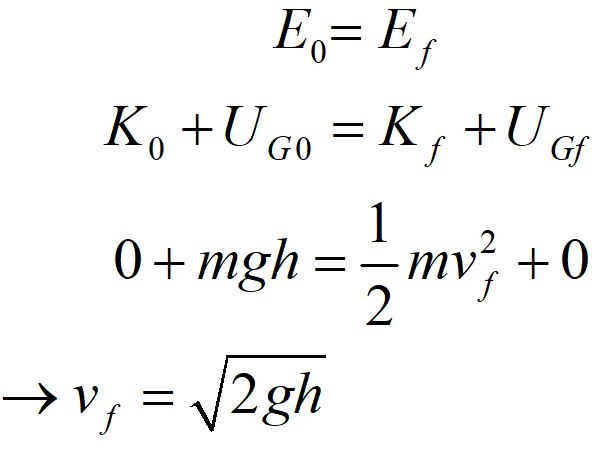 Energy is conserved in this situation. Note that the change in potential energy depends on the difference in y. If our gravitational force is constant, we are free to choose the zero of our potential energy. If we lift an object a height h, hold it at rest and then drop it, we can calculate the final velocity of the object when it returns to its original height.