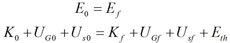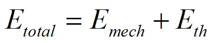 Total energy includes mechanical energy and thermal energy. Notice we have included kinetic energy, gravitational and spring potential energy on both the initial side and the final side of the equation, but the thermal energy only appears on the final side of the equation. That is because the thermal energy we are considering arises from friction during the interaction, and is not present beforehand.
