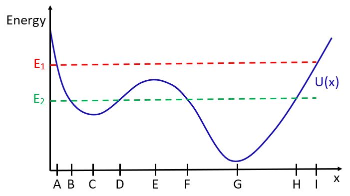 1. Suppose a particle with energy E1 is at position A, moving right. Is it speeding up, slowing down or moving at constant speed?