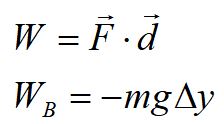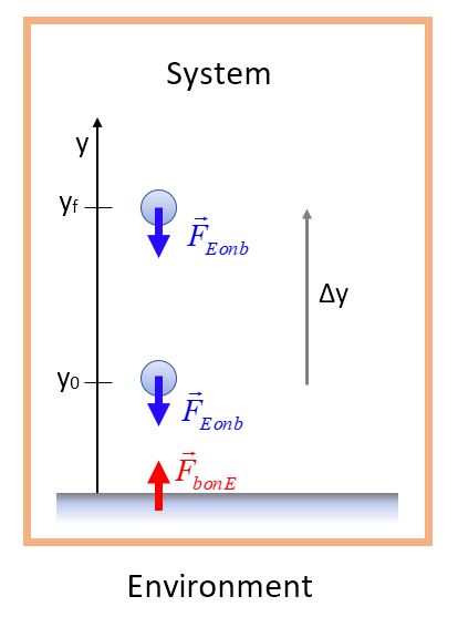 Recall that work is defined as the dot product of force and displacement (for a constant force). Here, that means we can write the work done on the ball as the product of the gravitational force and its change in position in y.