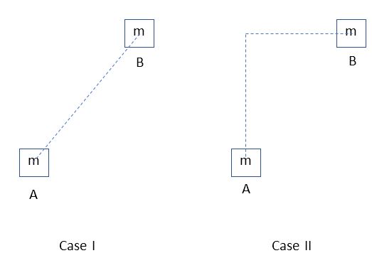 2. The diagram below shows a top-down view of a block of mass m that is pulled by a rope from position A to position B by two different paths. Assume there is friction between the block and the floor. Compare work done on the block by the rope against friction in the two cases.