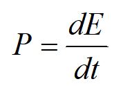 We define power as the rate of change of the energy of a system with respect to time. The standard unit for power is Watts, equivalent to joules/second.