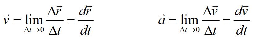 Taking the limit as the change in time goes to zero gives us the corresponding instantaneous velocity and acceleration.