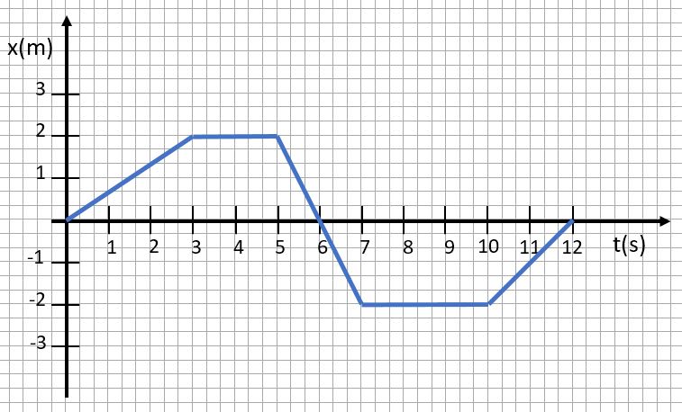 Here, the person started at the origin and walked 2 meters to the right in 3 seconds, then stood still for two seconds. Then the person walked 4 meters left in two seconds and stood still for 3 seconds before returning to the origin in two seconds.