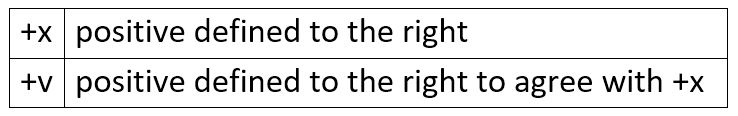 We define velocity to be positive in the direction of positive x. In our convention, if an object is moving to the right, it has positive velocity.