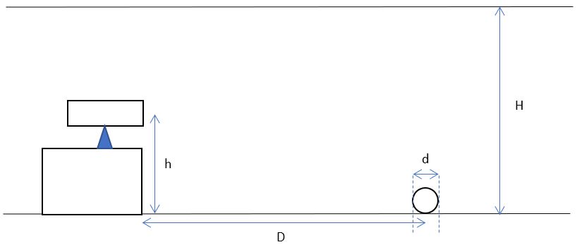 4. A marble gun shoots marbles of diameter d. When it is positioned such that the center of its barrel is a height h above the floor and its barrel is parallel to the floor, a marble fired from the gun hits the floor a distance D from the end of the barrel.