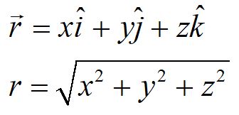 The position vector is commonly written in the form above. The magnitude of the vector can be found by taking the square root of the sum of the squares.