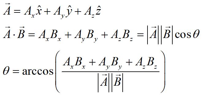 The dot product between two vectors gives the projection of one vector onto the other. It can be found by adding the products of the components of the vectors, or by multiplying the magnitudes of the vectors by the cosine of the angle between them.