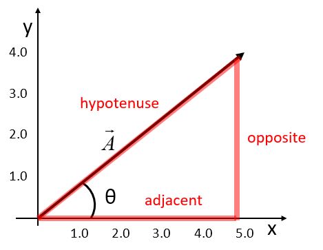 We use the trigonometric functions sine, cosine and tangent to relate the magnitude of the vector to its components.